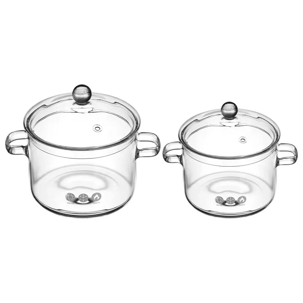 2 Pcs Pot with Lid Stovetop Stockpot Soup Stew Pots Dual Handle Cooking Lids Glass Food Pan