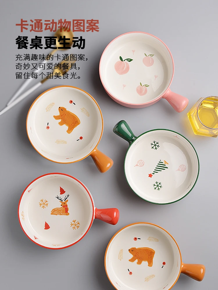 Оригинальная чаша с керамической ручкой, ручная роспись, глазурованная чаша для завтрака, фруктовая зерновая чаша для риса