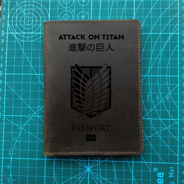 card holders cowhide attack on titan passport cover genuine leather holder full grain, Brown;gray