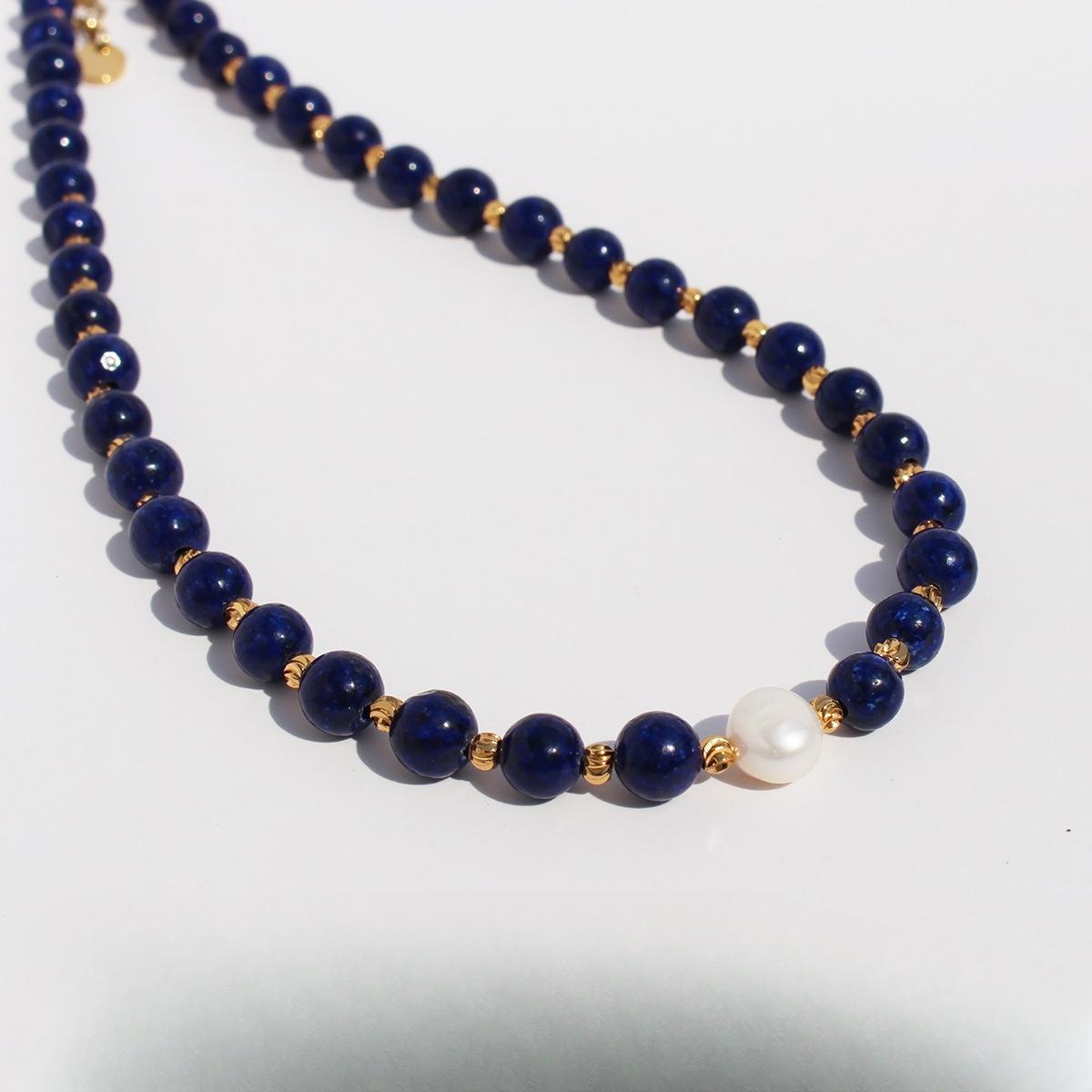 Оригинальное легкое роскошное нишевое ожерелье из голубого лазурита с бусинами, натуральный камень, барочный жемчуг, цепочка на ключицу 589