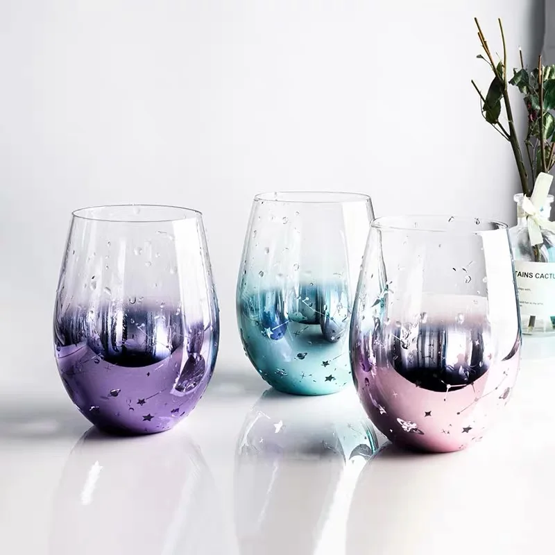 Transparent Electroplated Glass Wish Cup Colorful Shiny Wine Glass Beer Mugs Fruit Glasses Juice Cup