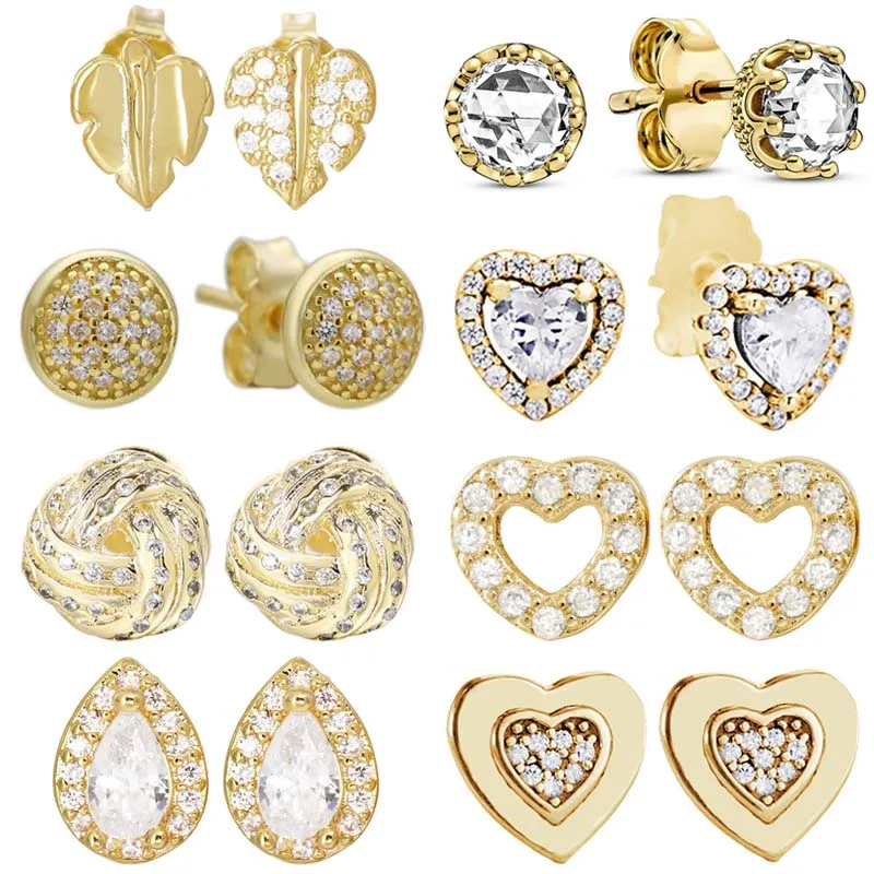 Оригинальные блестящие серебряные серьги-гвоздики в виде листьев, короны, сердца с узелком, блестящие серьги-гвоздики для женщин, популярные украшения «сделай сам»