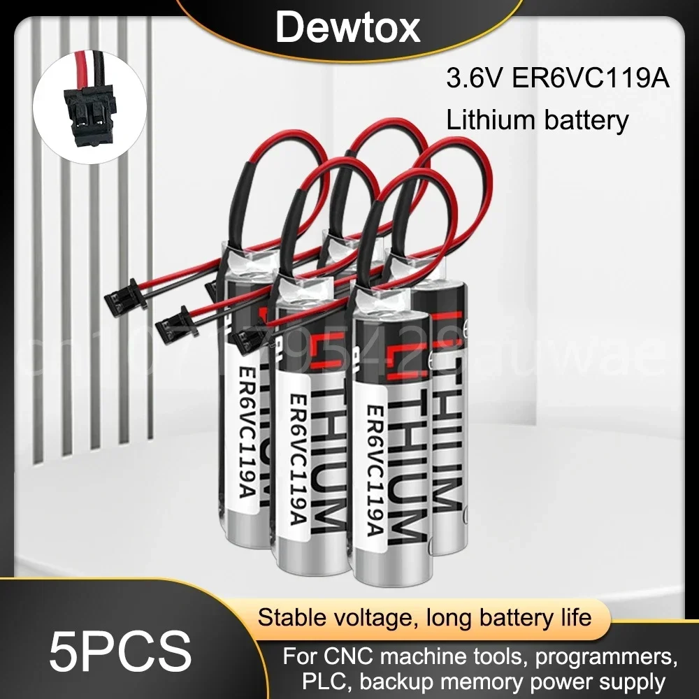 Оригинальные литиевые батареи ER6V ER6VC119A 3,6 в 2000 мАч с черными разъемами для станков с ЧПУ, аккумулятор PLC, 5 шт.