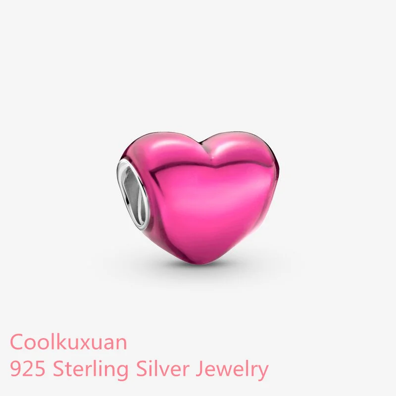 Оригинальные подвески-бусины в виде серебряного металлического розового сердца для браслетов Pandora, изготовление ювелирных изделий, День Святого Валентина 2022