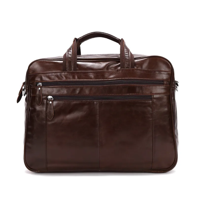 Nesitu Vintage Large Coffee Genuine Leather Men Briefcase Business Travel Messenger Bags 14'' 15.6'' Laptop Portfolio M1017