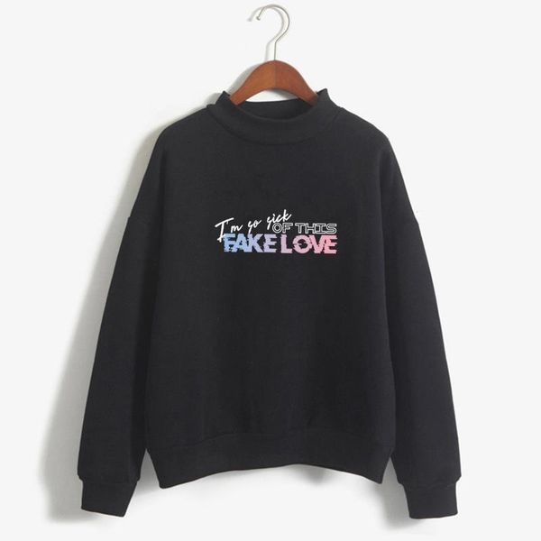 new arrival k-pop bangtan boys army print hoodie i am so sick of this fake love sweatshirt women fans sweatshirt clothes, Black