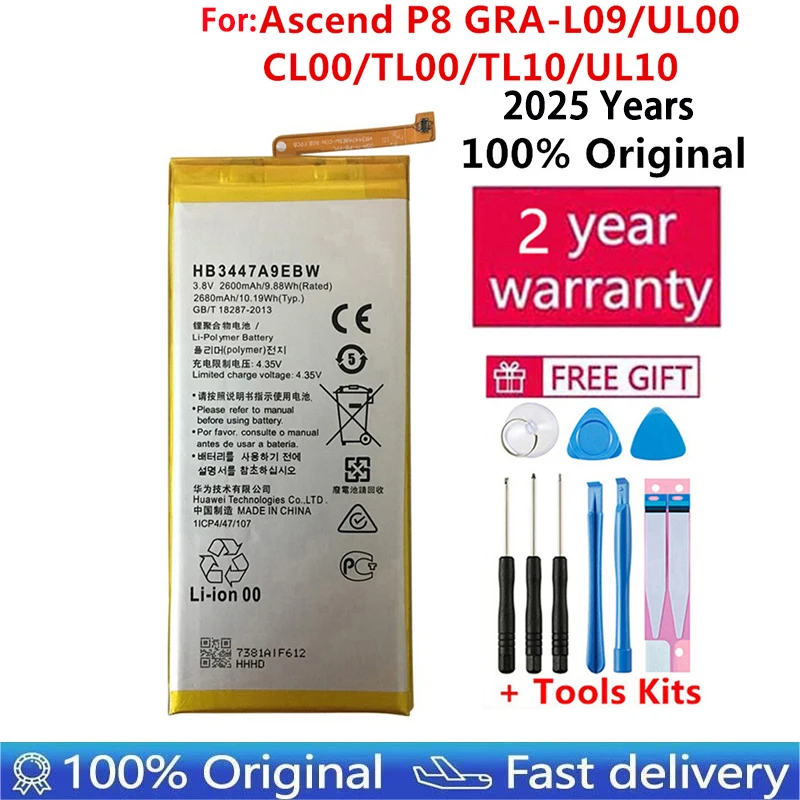 100% оригинальный аккумулятор HB3447A9EBW для Huawei Ascend P8 GRA-L09 GRA-UL00 GRA-UL10 2600 мАч литий-ионный с набором инструментов