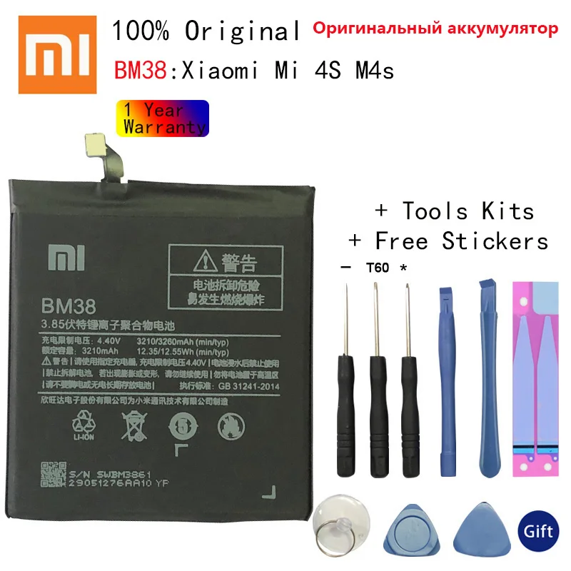 Оригинальный аккумулятор Xiao Mi BM38 на 3260 мАч для телефона Xiaomi 4S Mi 4S Mi4S высококачественные батареи с номером отслеживания