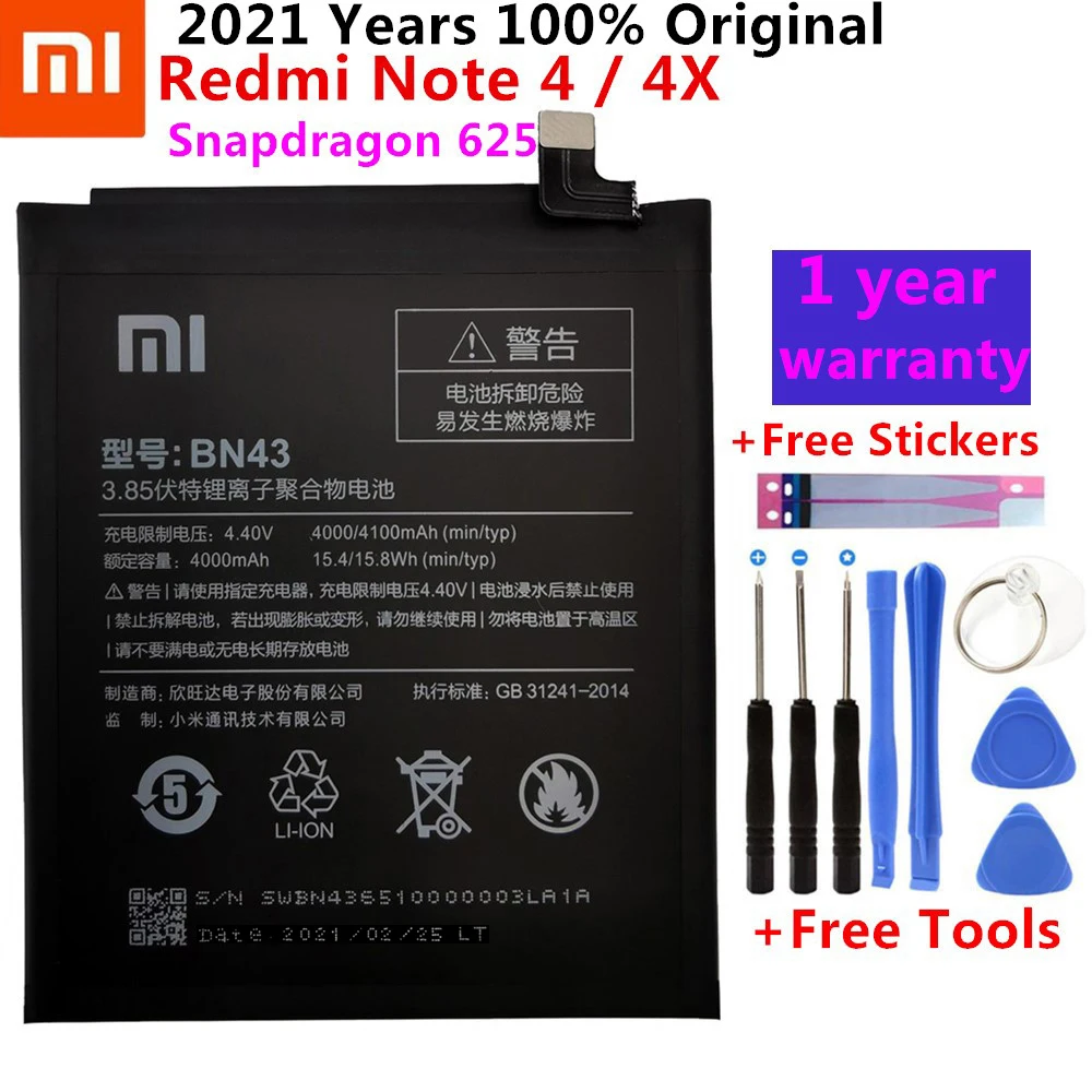 Оригинальный аккумулятор Xiaomi BN43, запасной аккумулятор для Xiaomi Redmi Note 4X/ Note 4 глобальная версия, Snapdragon 625, 4000 мАч