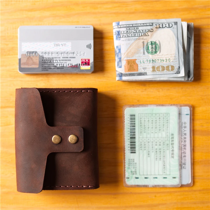 Оригинальный бумажник ручной работы для мужчин, маленький бумажник из кожи Crazy Horse, бумажник из натуральной кожи с держателем для карт