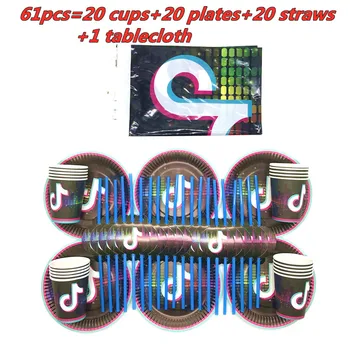 TikTok Theme Party Tableware set Paper Plate Cups Straws Baby Shower Birthday Party Decor Tablecloth Kids Birthday Party Supplie