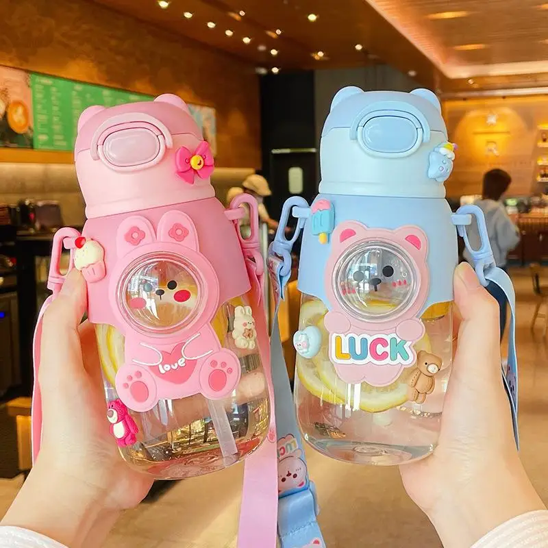 Портативная чашка с крышкой для учеников, детская бутылка для воды с чашкой, милая соломенная пластиковая бутылка для воды для девочек