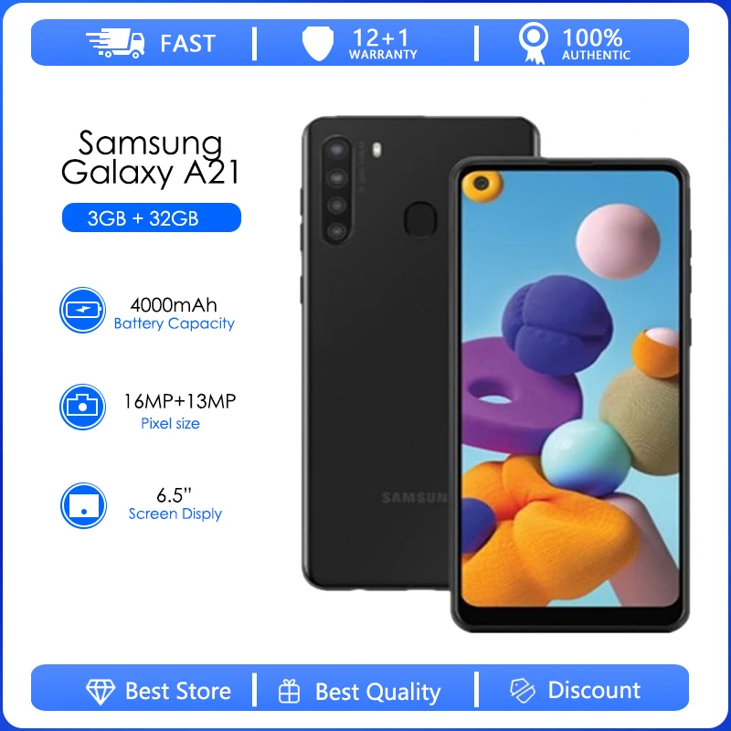 Оригинальный разблокированный смартфон Samsung Galaxy A21 A215U, 4000 мАч, Android, Wi-Fi, GPS, 16 Мп, 6,5 дюйма, 32 ГБ, 3 ГБ ОЗУ