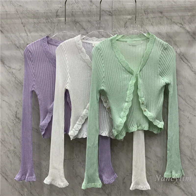 Lovely Girl Temperament New All-Matching Summer Thin Cardigan Women Slim Fit Short Sun Protection Shirt Simple Long Sleeve Top