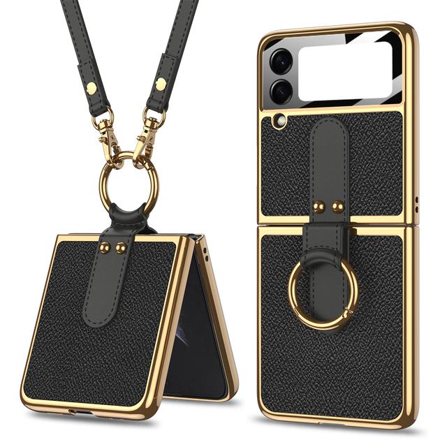 Оригинальный чехол для Samsung Galaxy Z Flip 3 5g, роскошный кожаный ремешок с покрытием, кольцо-подставка, жесткий чехол для Samsung Z Flip 3 5g Only Case