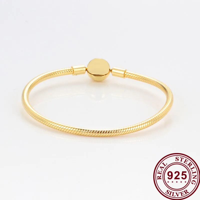 Оригинальный 925 брелок, серебряный браслет, Круглый классический золотистый браслет, подходящий к европейским шармам, Женские Ювелирные из...