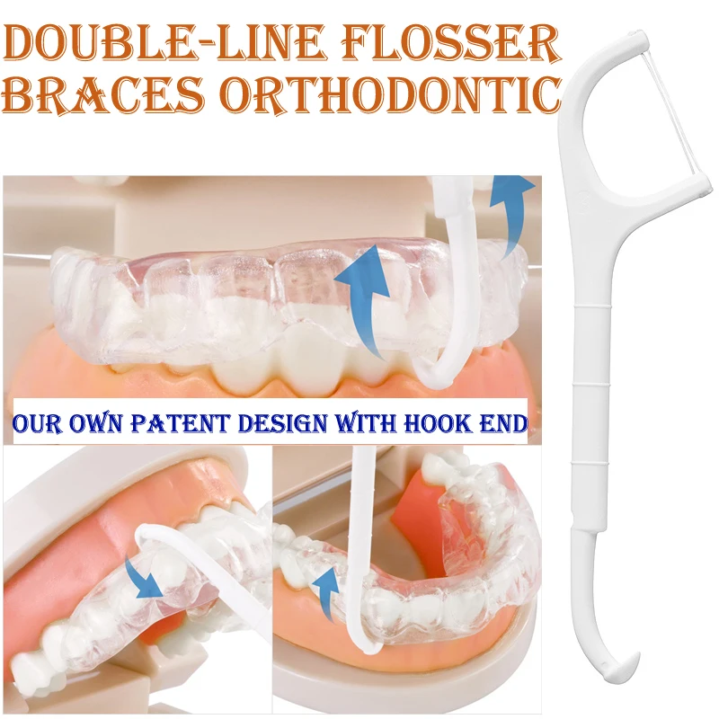 Lit-Pack (manufacturer) Orthodontic Braces Cleaning Double Line Flosser Patent Design Hook End Dental Oral Toothpick 108 pcs