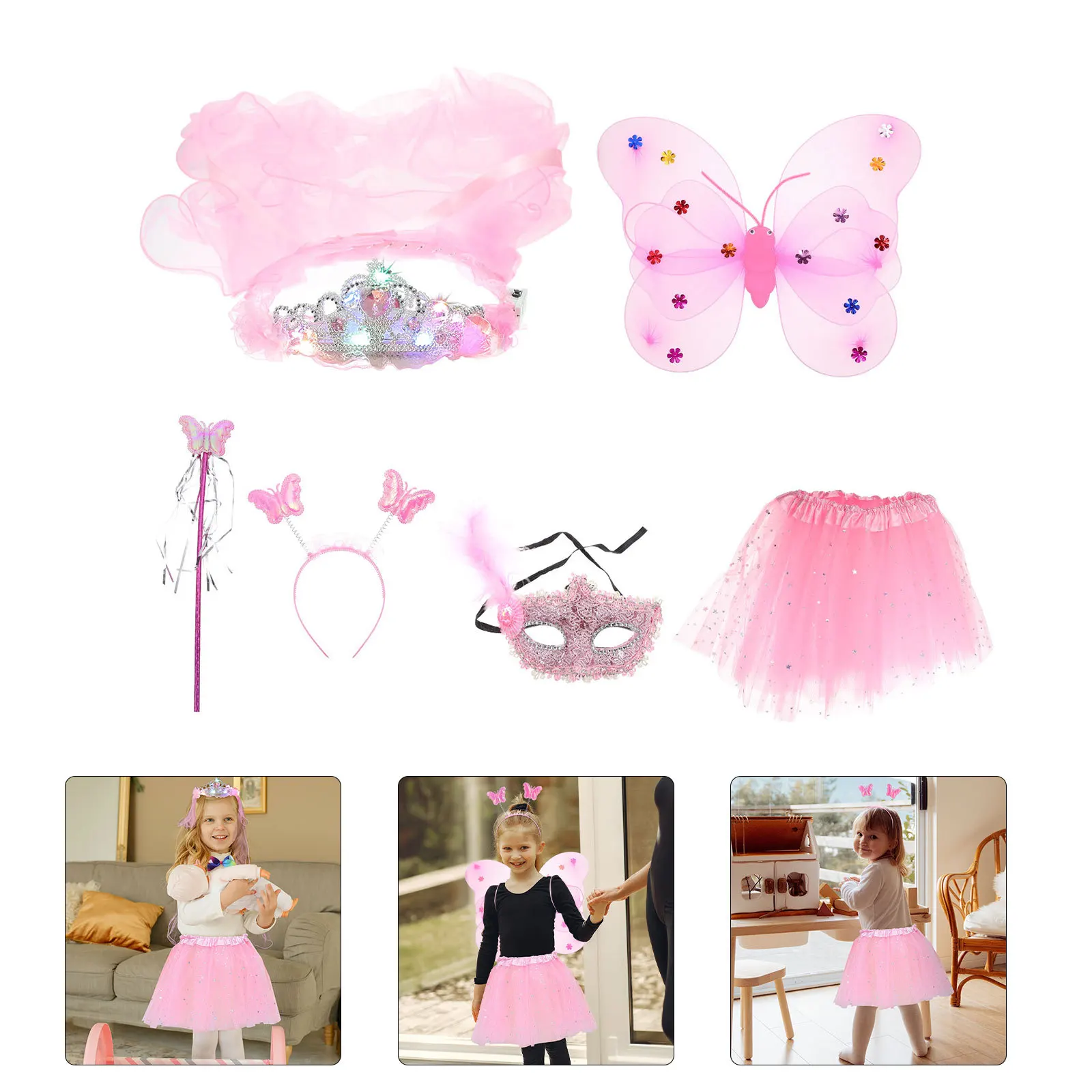 1Set Fairy Costume Set Pink Wings Skirt Stick Accessories for Princess Party Performance Wings Set Costume Accessories