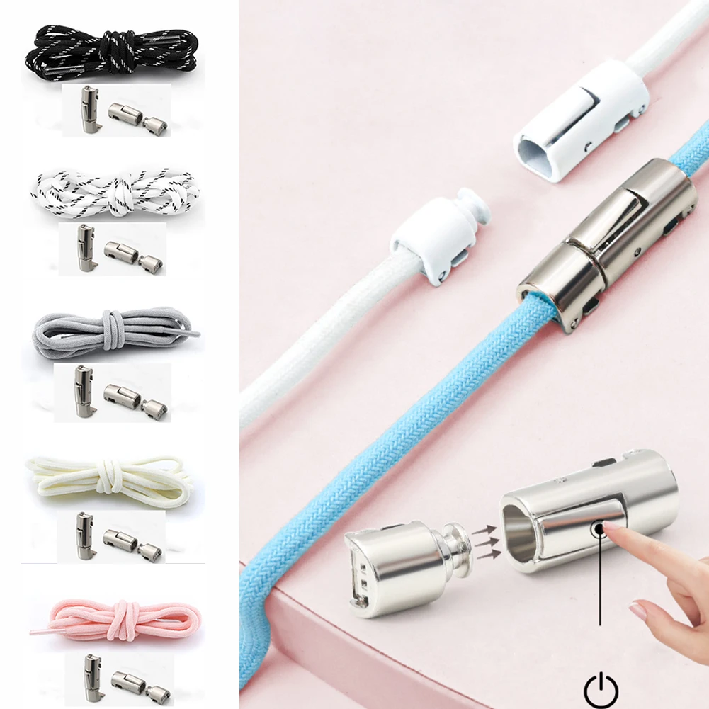 Metal Buckle Elastic Shoe laces No Tie Shoelaces for Sneakers Round Shoelace Kids Adult Solid Laces Fits All Shoes 100/120cm