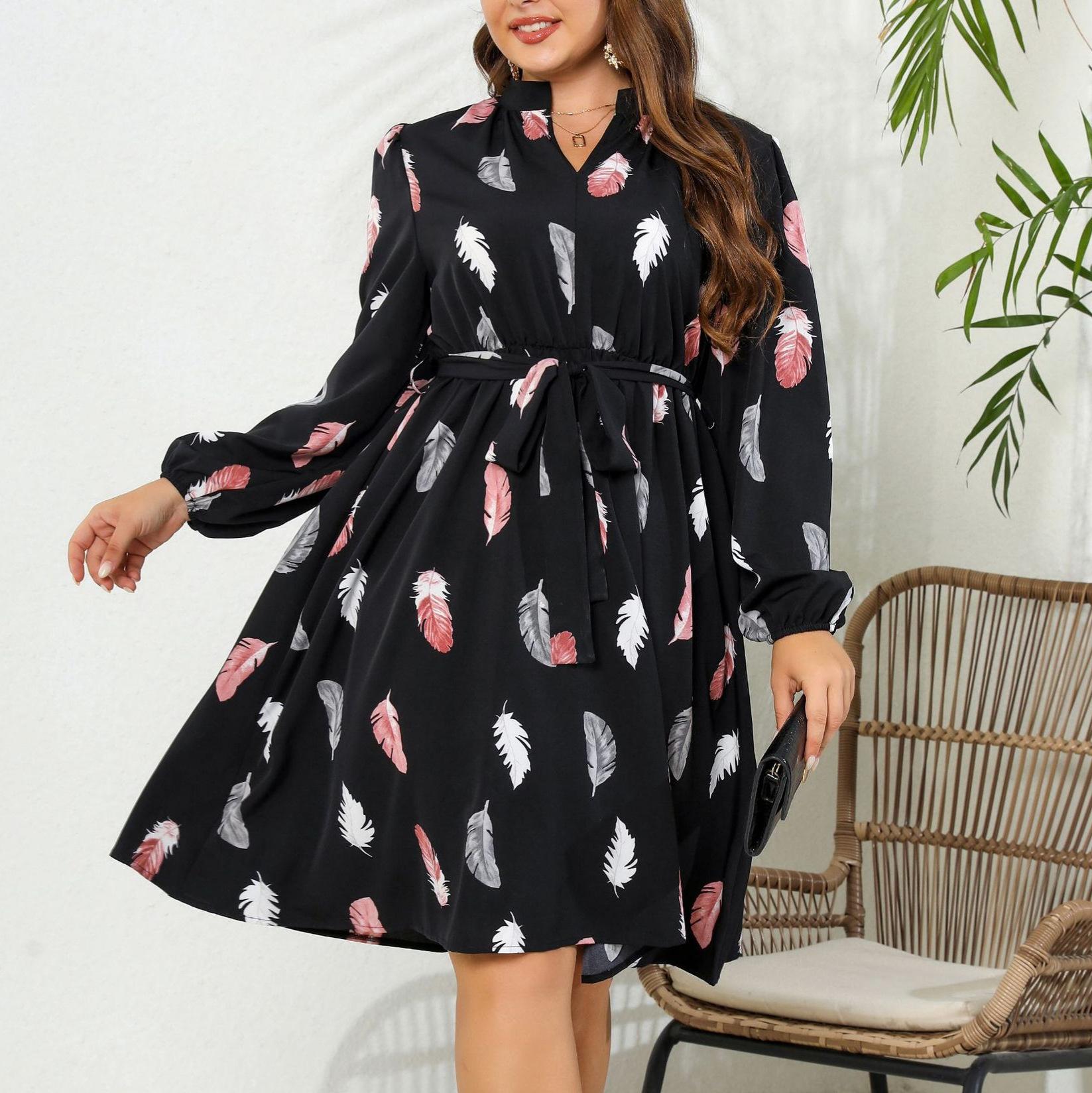 Осеннее женское платье с длинным рукавом и принтом, элегантные платья больших размеров 1XL чёрный