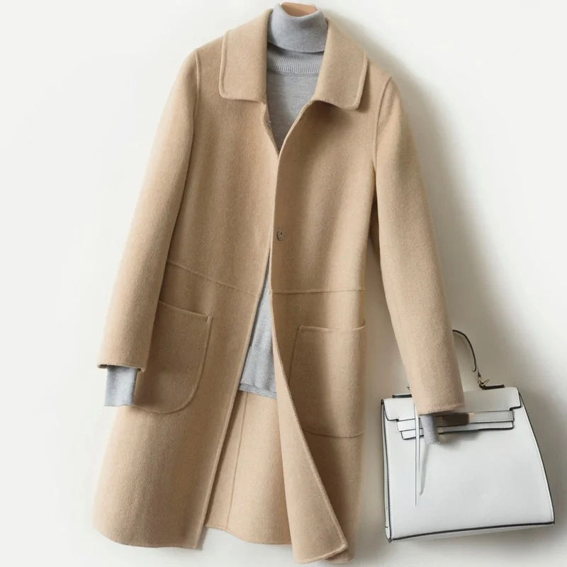 Осеннее пальто из 100% шерсти, женское длинное синее модное двухстороннее шерстяное пальто, зимняя верхняя одежда из смешанной шерсти, женская одежда Abrigos WPY4222