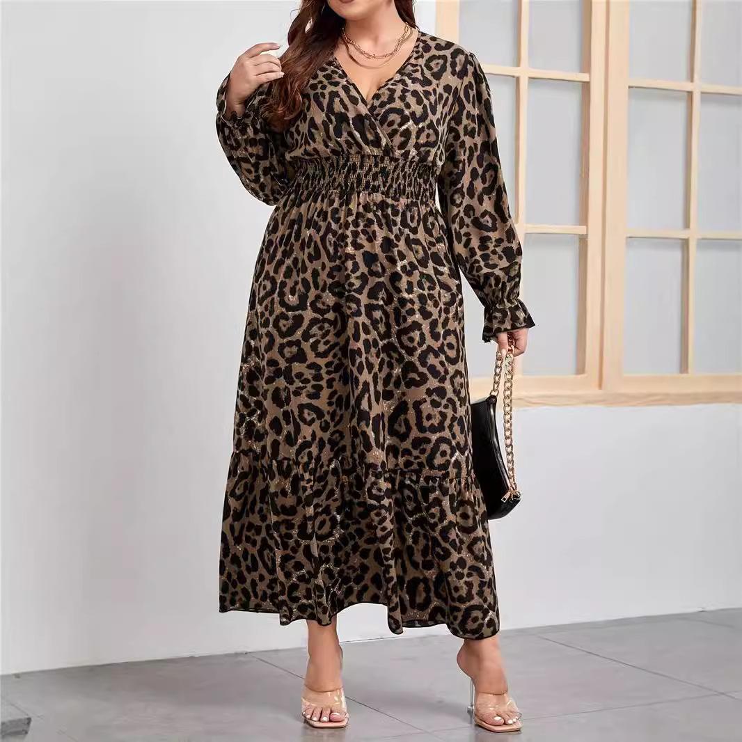 Осеннее платье с цветочным принтом и оборками на рукавах Платья больших размеров 5XL цветной печати леопарда