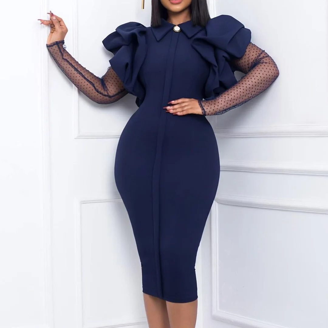 Осеннее платье HOUZHOU, женское модное однотонное платье с длинным рукавом и сетчатой вставкой, женское яркое зеленое приталенное платье