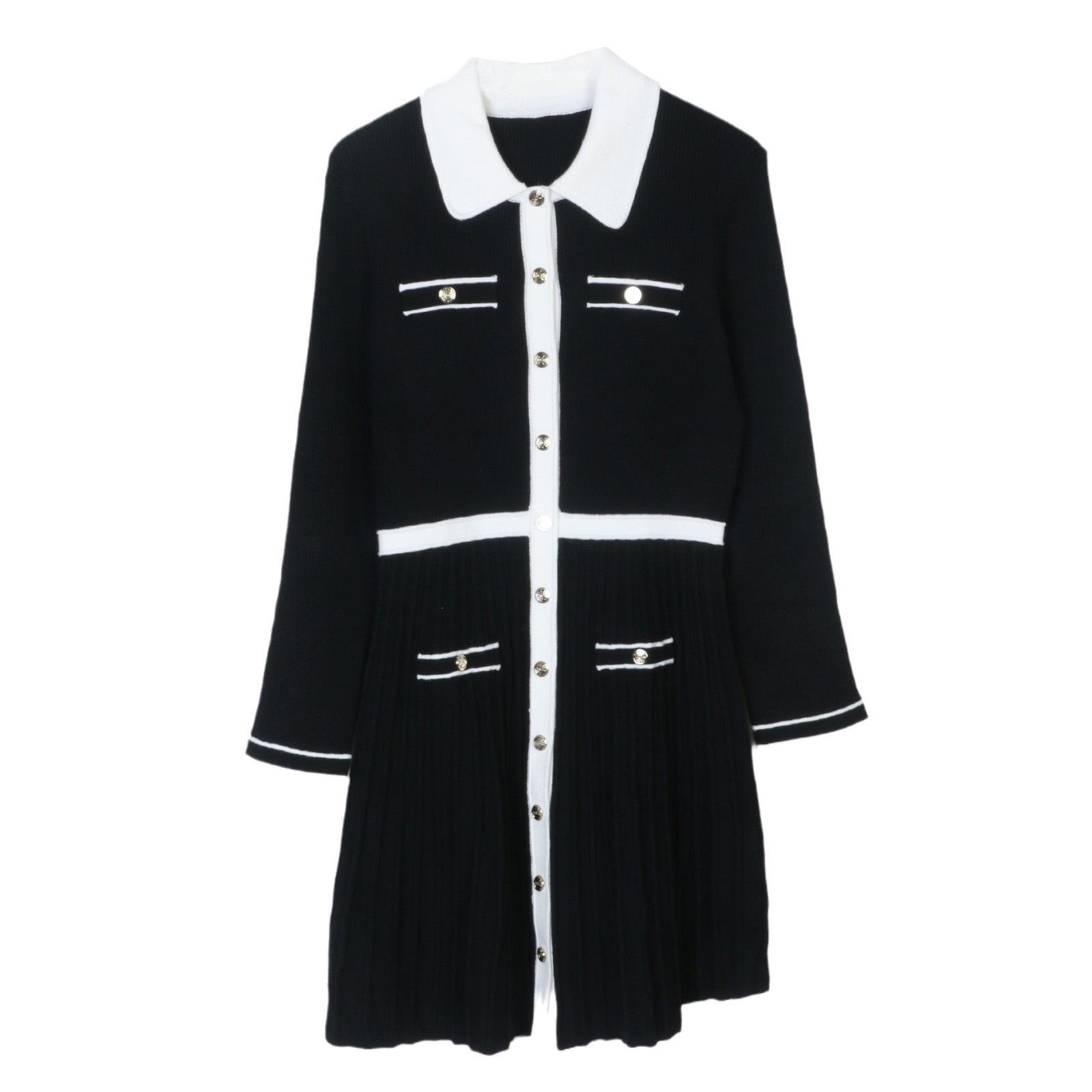 Осеннее трикотажное платье в стиле колор-блок с плиссированной юбкой и длинными рукавами S