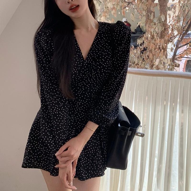 Осеннее французское ретро-платье в черный горошек: Нежный стиль морского отдыха XL
