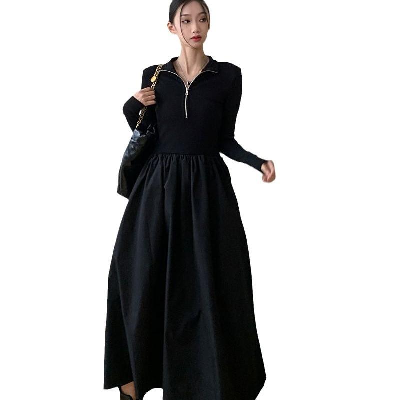 Осеннее черное платье с длинным рукавом Женское маленькое длинное платье Корейская версия Новая женская весенне-осенняя юбка M чёрный