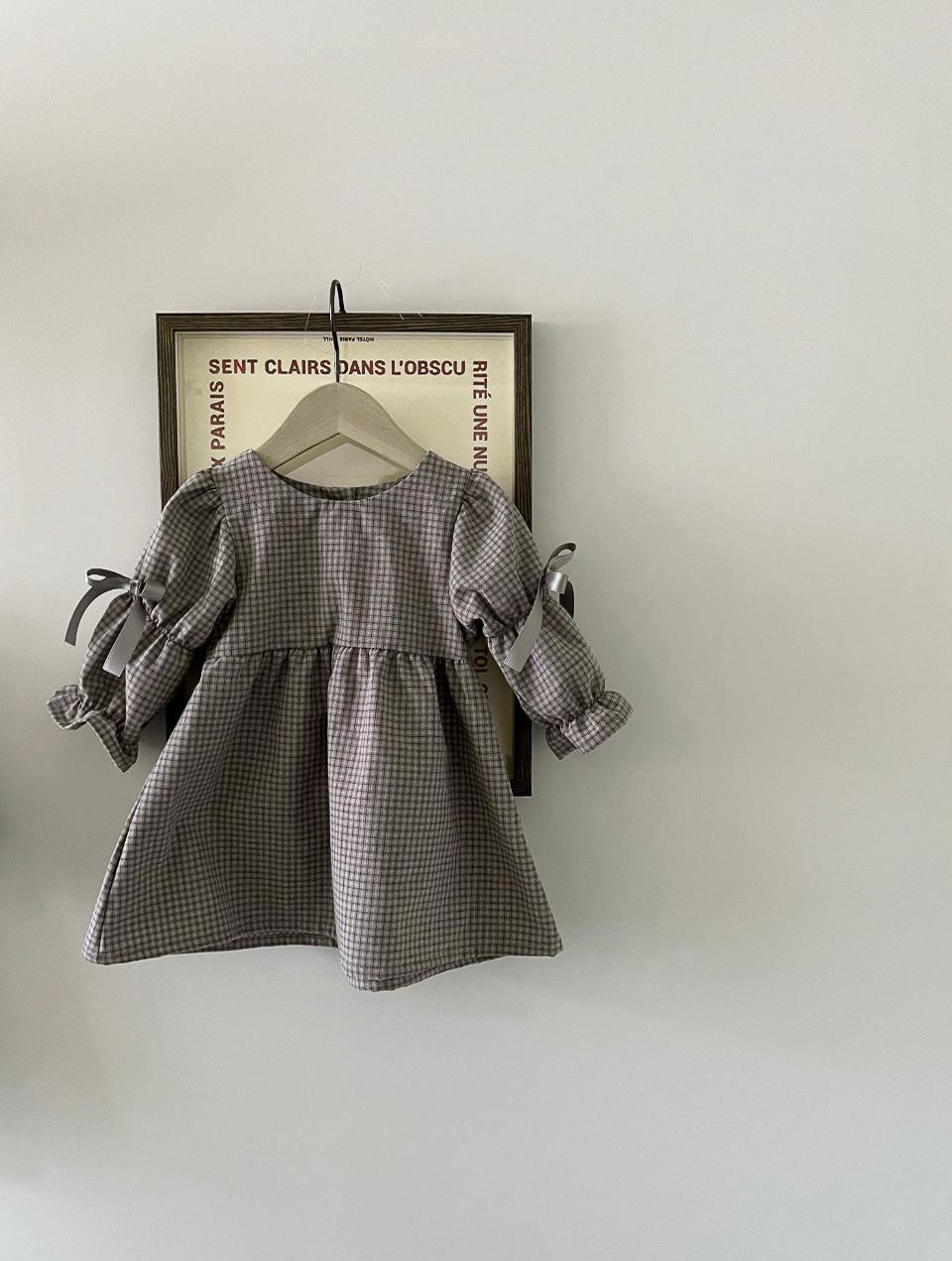 Элегантное платье принцессы с бантом в клетку для девочек 2024 года 90 cm