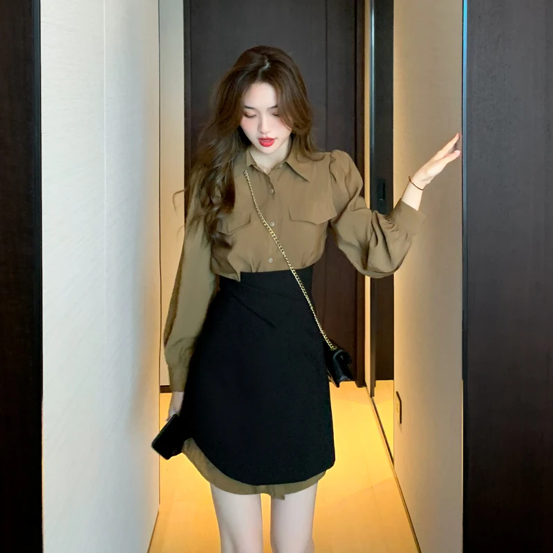 Осенне будет на новую юбку, Женская юбка с высокой талией, подчеркивает свою мораль, тонкая юбка средней длины joker tw
