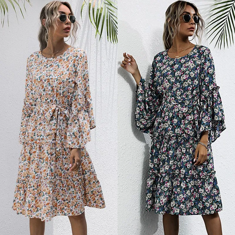 Осенне-зимнее женское платье с длинным рукавом, элегантные женские Платья с цветочным принтом, Повседневное платье