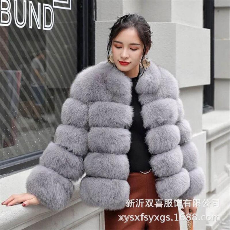 Осенне-зимнее меховое пальто, новая мода, воротник-стойка, корейская версия, повседневная теплая искусственная лисья шуба S абрикосовый
