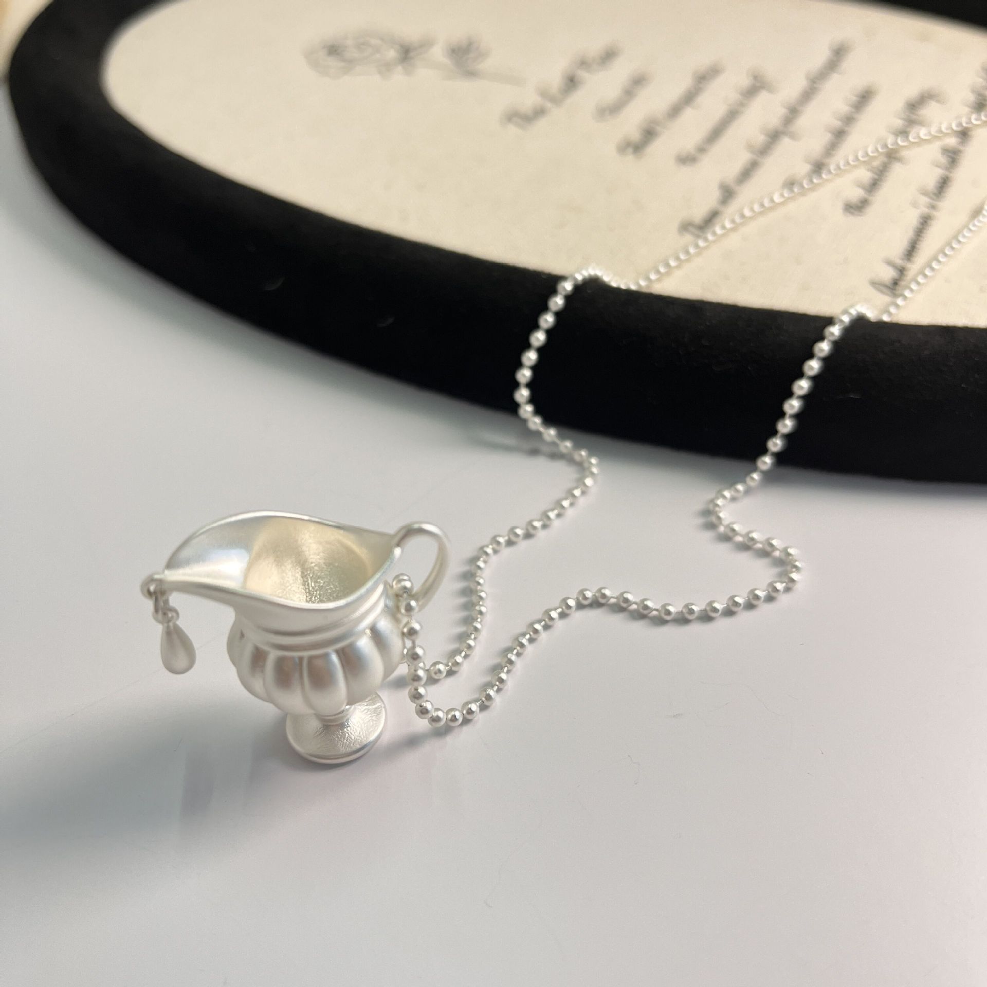 Осенне-зимнее новое ожерелье из молочного бидона в средневековом французском стиле, картина маслом, девушка, матовое серебро, легкая роскошная нишевая бижутерия, универсальная цепочка для свитера