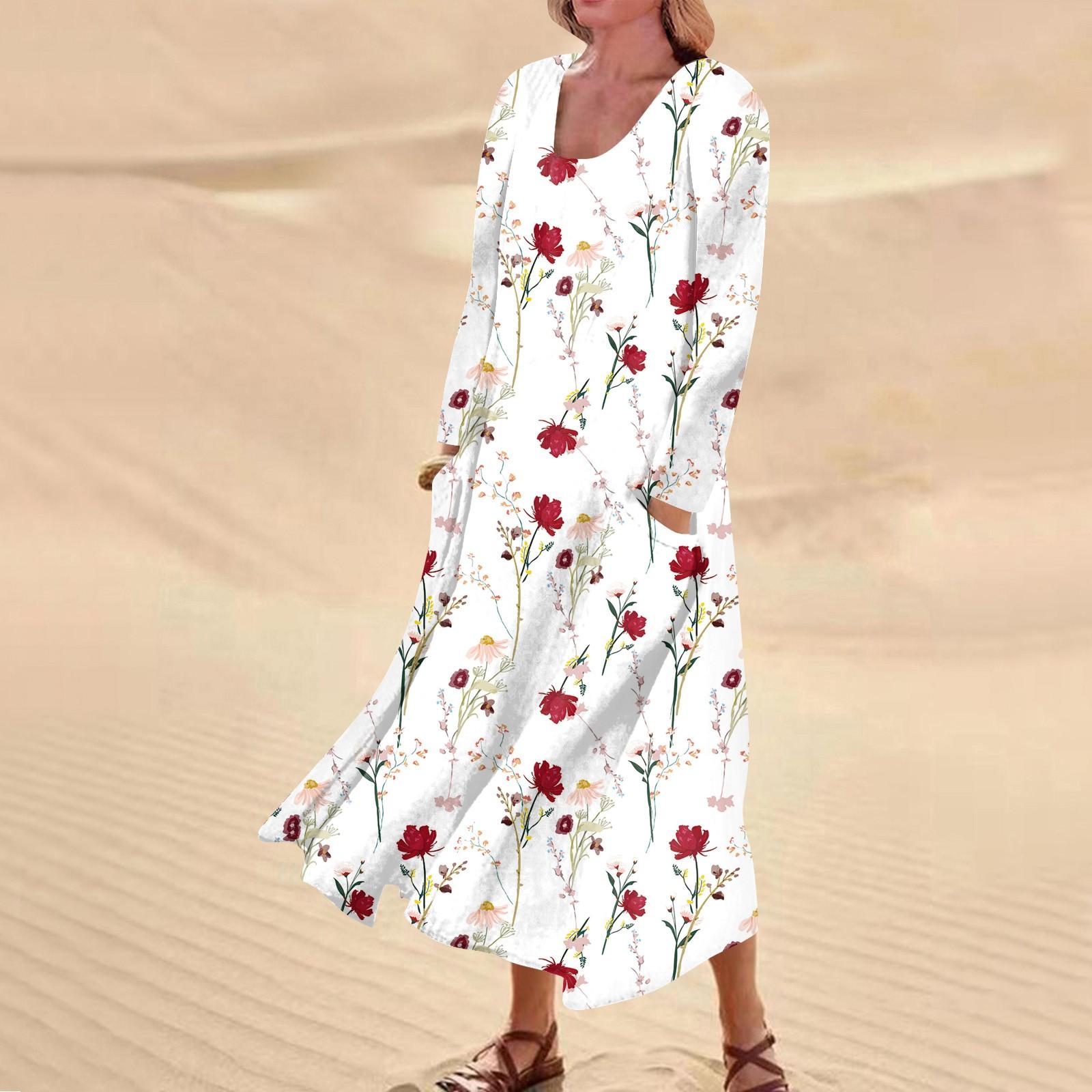 Осенне-зимнее платье для женщин, повседневное удобное модное платье с принтом и круглым вырезом, длинными рукавами и карманами XL красный