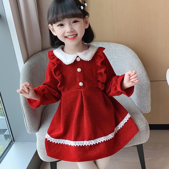 Платье корейской принцессы с кукольным воротником для девочек, осень-зима 2023 г. 110 cm красный
