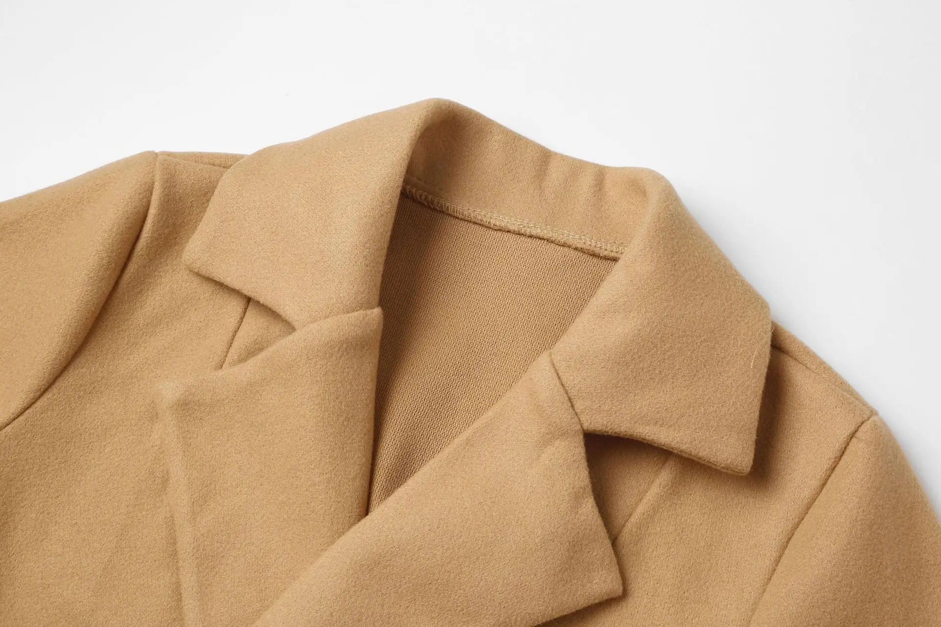 Осенне-зимнее шерстяное пальто, Однотонное шерстяное пальто средней длины с отложным воротником