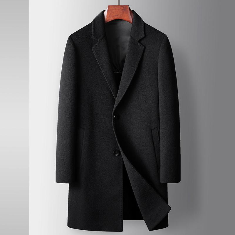 Осенне-зимнее шерстяное пальто средней и длинной длины для молодежи, деловое двухстороннее пальто-тренч, однотонное повседневное пальто 190 чёрный