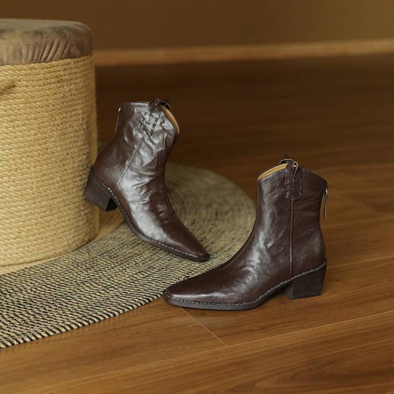 Осенне-зимние ботильоны до середины голени на среднем каблуке с острым носком, задняя молния, однотонные, женские ботинки больших размеров, резиновая подошва, квадратный каблук, новые ботильоны до середины голени 40