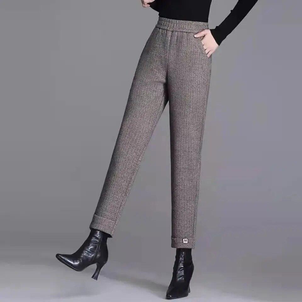 Осенне-зимние женские однотонные эластичные классические брюки-халуны с высокой талией, шерстяные модные повседневные официальные брюки для пригородных поездок 4XL хаки