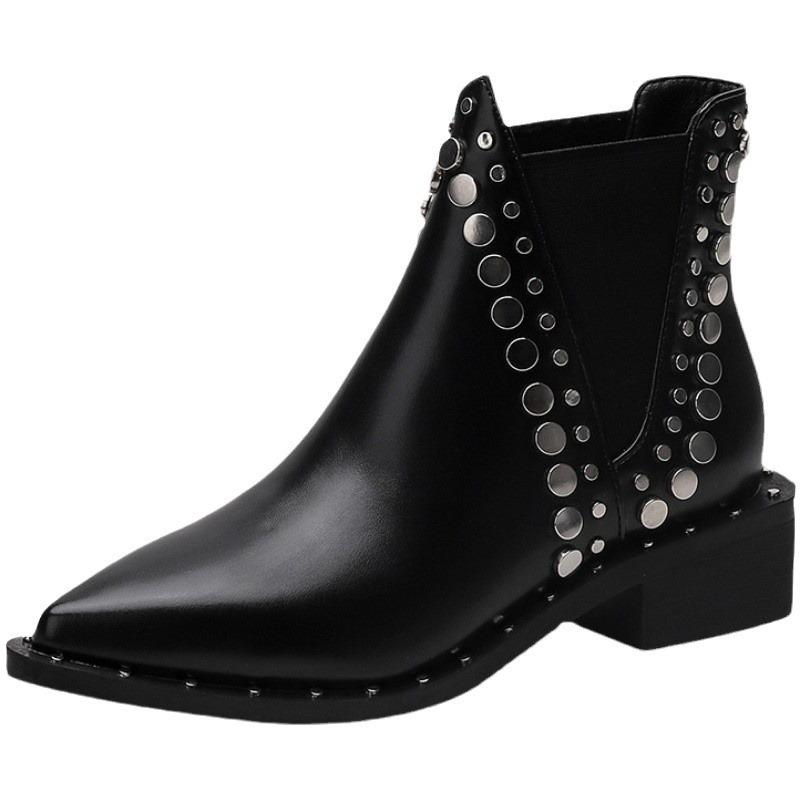 Осенне-зимние женские сапоги на толстом каблуке в британском стиле с заклепками и острым носком на среднем каблуке 38 чёрный