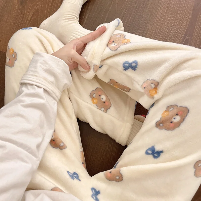Осенне-зимние пижамные штаны для девочек, домашняя одежда с героями мультфильмов, фланелевые милые пижамы, сохраняющие тепло, утепленная новая женская ночная рубашка с принтом, оптовая продажа