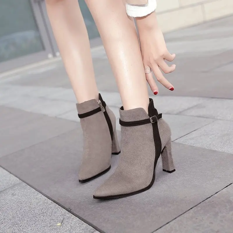Осенне-зимние простые женские короткие сапоги в европейском и американском стиле на тонком высоком каблуке
