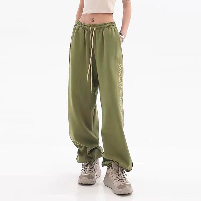 Осенне-зимние ретро-зеленые широкие повседневные брюки женские свободные спортивные брюки для уличных танцев и хип-хопа на завязках XL зелёный