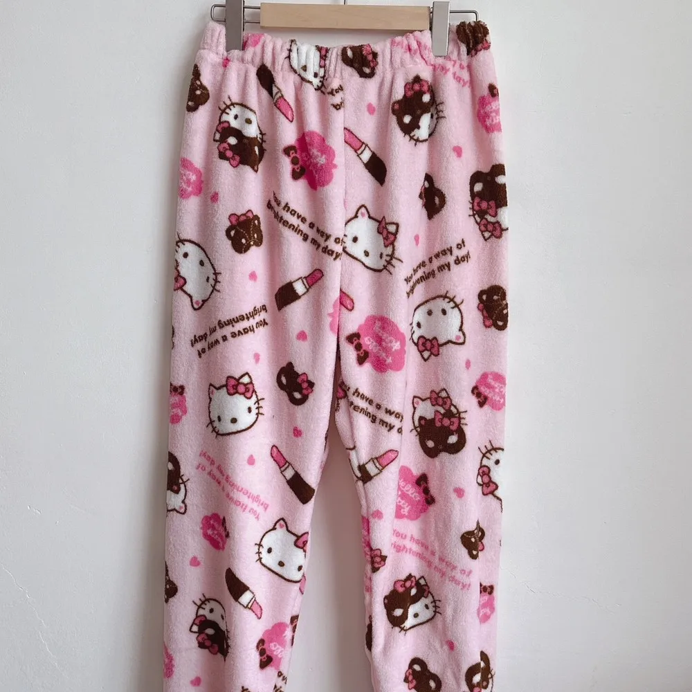 Осенне-зимние теплые домашние повседневные брюки с рисунком Sanrio, Hello Kitty Kuromi, аниме Пижамные брюки, милые флисовые Пижамные брюки, подарки