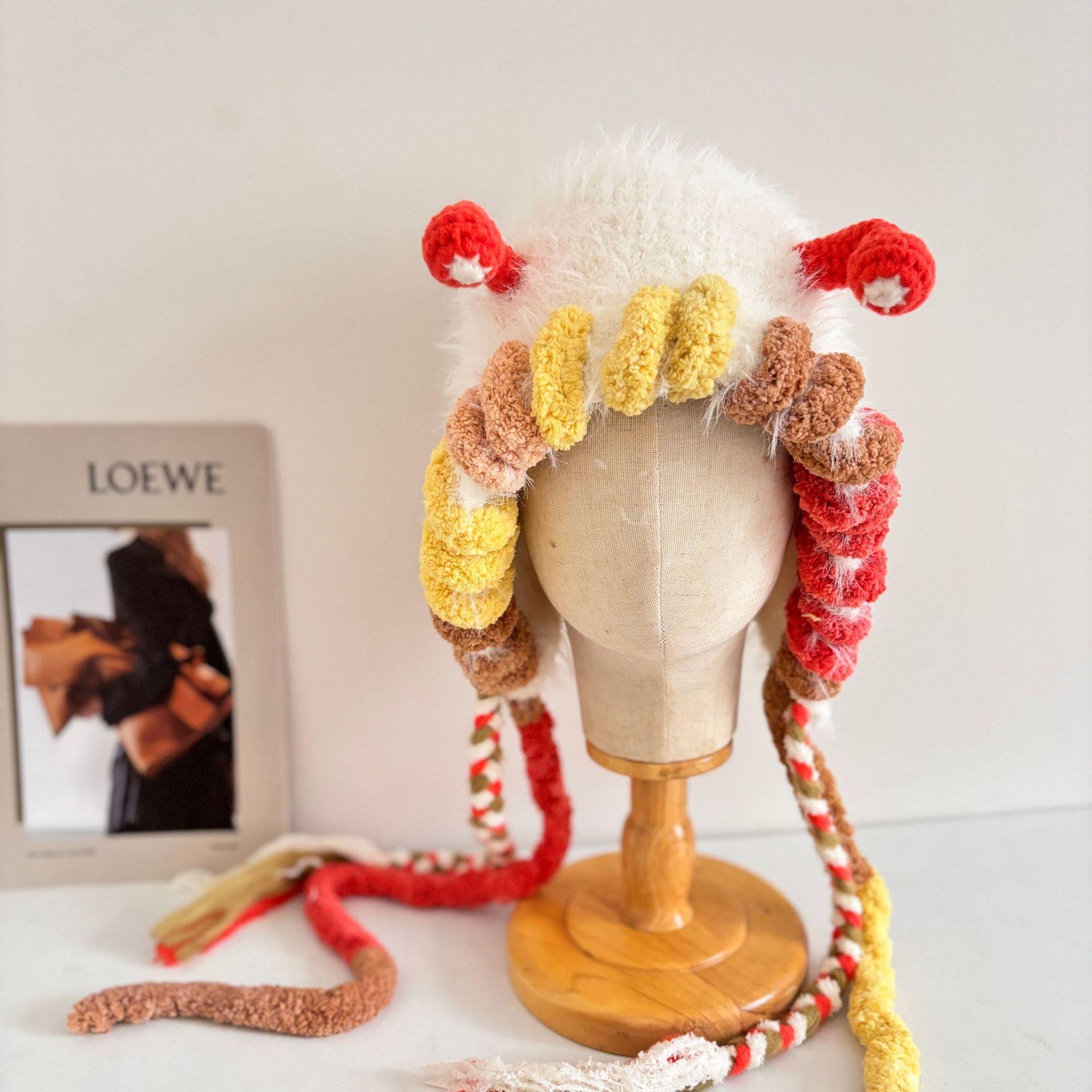 Осенне-зимние теплые шапки для ушей, толстые вязаные шапки ручной вязки, милые плюшевые шапки в виде маленьких монстриков, женский тренд M(56-58cm)