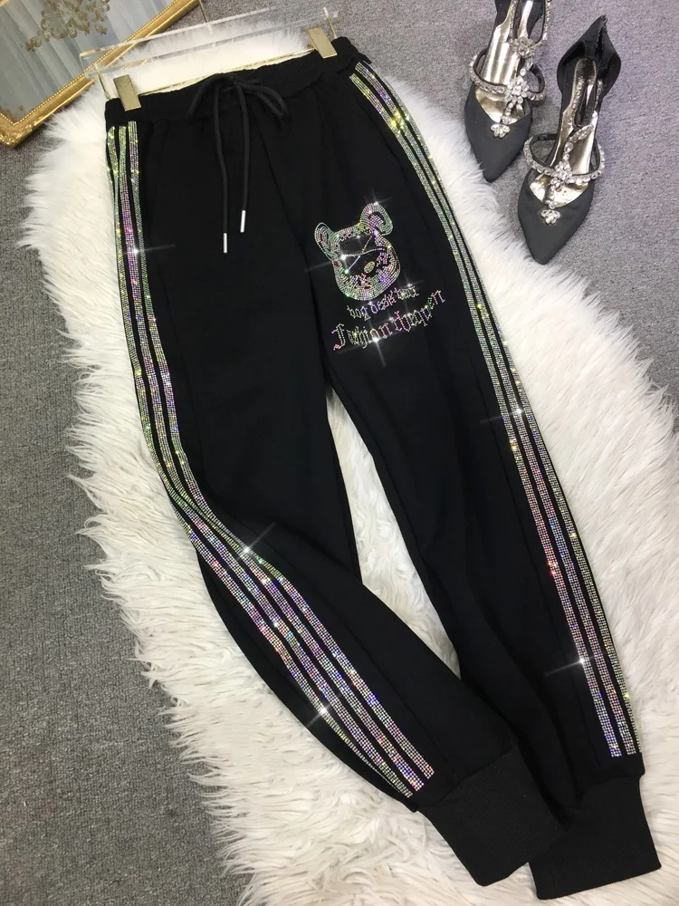 Осенне-зимние утепленные черные спортивные брюки на флисовой подкладке для женщин