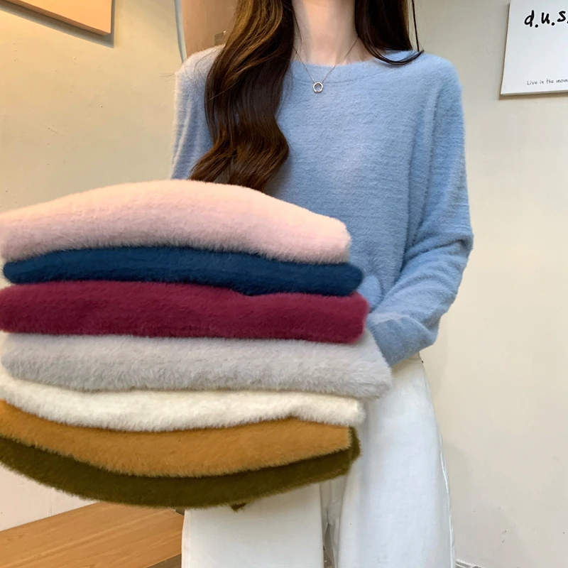 Осенне-зимний Корейский свободный свитер с длинным рукавом из норки, толстый свитер