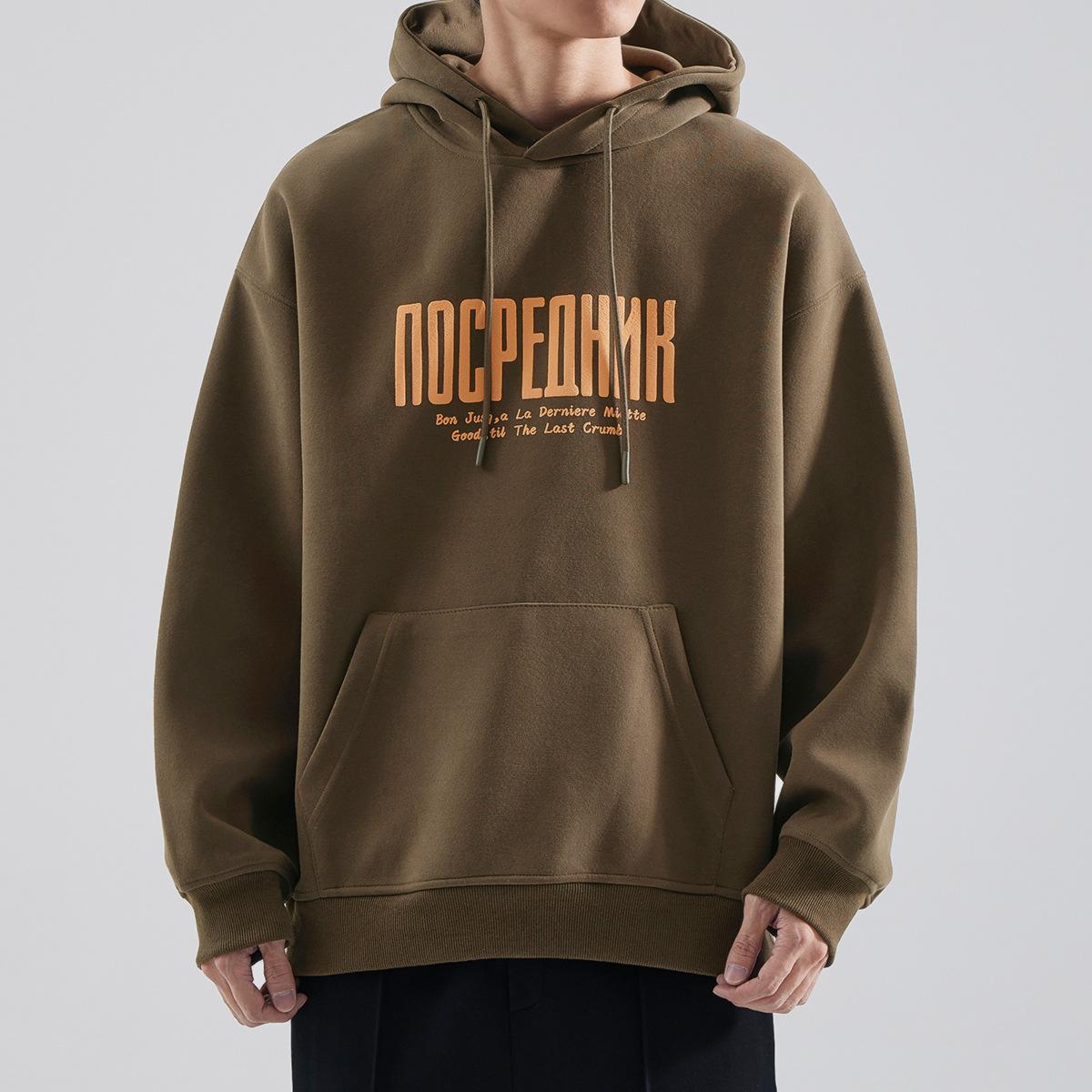Осенне-зимний бархатный утолщенный 380G тяжелый свитер с капюшоном мужской американский модный бренд свободный повседневный топ куртка модный 3XL армия зеленый